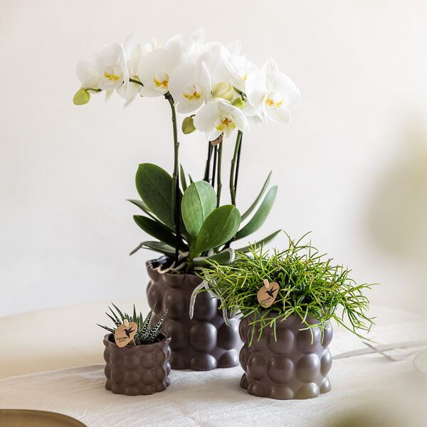Verkrijgbaar in drie natuurlijke kleuren en twee formaten (6 cm en 9 cm), is de Cotton pot ideaal voor kleine Kolibri Greens of elegante Kolibri Orchids. De matte afwerking en ronde vormen maken het een subtiel, maar karaktervol accent in elke ruimte.