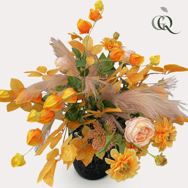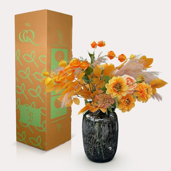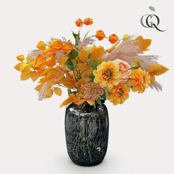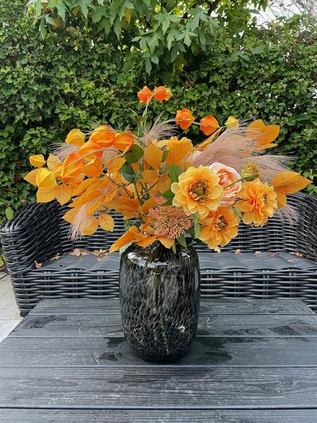 Maak kennis met ons Orange Dreams Bouquet! Met dit fraaie najaarsboeket geef je jouw interieur een unieke uitstraling. Het past perfect in verschillende woonstijlen en is een echte blikvanger in elke ruimte. Al helemaal wanneer je het najaarsboeket in een van onze vazen plaatst.