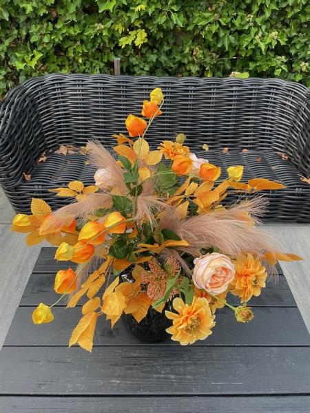 Het najaars kunstboeket is samengesteld door een topbloemist. Door de hoge kwaliteit van de kunstbloemen zijn deze haast niet van echt te onderscheiden. De variatie van bloemen geven dit boeket een speelse uitstraling. Of je het kunstboeket nu op je tafel, dressoir of bureau zet, hiermee maak je blijvend indruk. Bestel dit pronkstuk vandaag nog en geef je interieur een upgrade!
