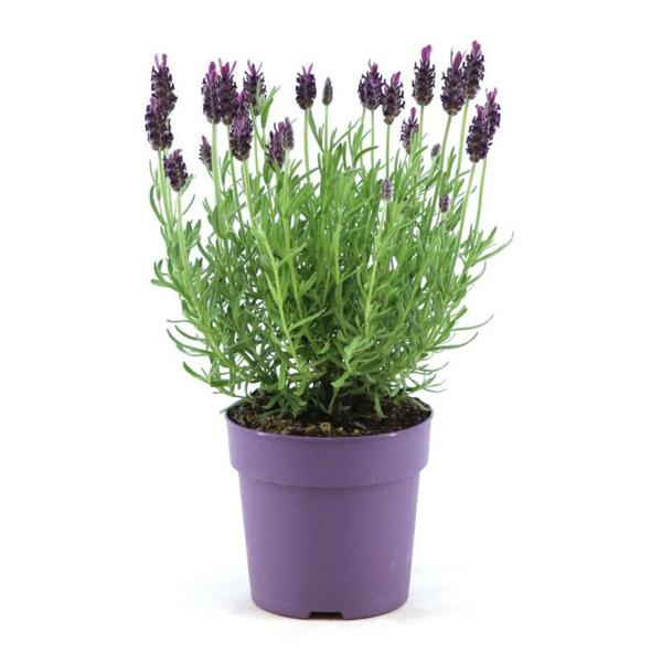 De Lavendel stoechas ‘Anouk’ is een prachtige en decoratieve toevoeging aan elke tuin. Met zijn zonnige standplaats en goed doorlatende grond voelt deze lavendelsoort zich het meest op zijn gemak. Hij kan gebruikt worden in borders, rotstuinen, als bodembedekker of zelfs in potten op het terras. De compacte groei maakt hem perfect voor kleine tuinen en containers. De opvallende paarse bloemen met karakteristieke kuifjes zorgen voor een speelse en kleurrijke uitstraling. Hoewel de Lavendel stoechas ‘Anouk’ matig winterhard is, kan bescherming nodig zijn tijdens strenge winters. De milde lavendelgeur brengt een aangename sfeer in de tuin. Na de bloei kan de plant lichtjes teruggesnoeid worden om de vorm en compactheid te behouden. Bestel nu de Lavendel stoechas ‘Anouk’ en geniet binnenkort van de unieke schoonheid en geur in jouw tuin!