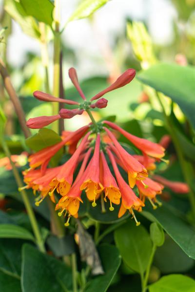 De Lonicera dropmore Scarlet is een mooie kamperfoelie met een rode bloemkleur. Bloeit rijkelijk en houdt van een plek in de volle zon of half schaduw.
