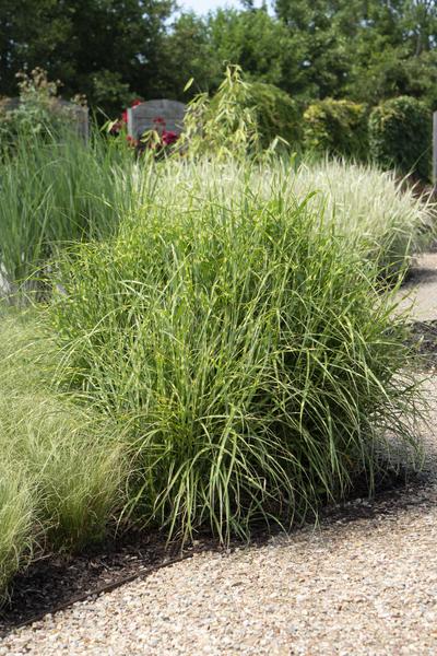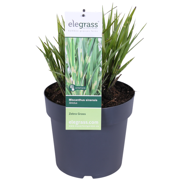 De ‘Miscanthus Sinensis ‘Strictus’’ is een sierlijk gras met opgaande groei en opvallende speelse groen-geel dwarsgestreepte bladeren. Door de strepen is zijn bijnaam ook wel zebra gras. Dit siergras bloeit met bronskleurige pluimen in de nazomer. Het is een sterke groeier, die geschikt is voor zowel de volle grond als in een sierpot.