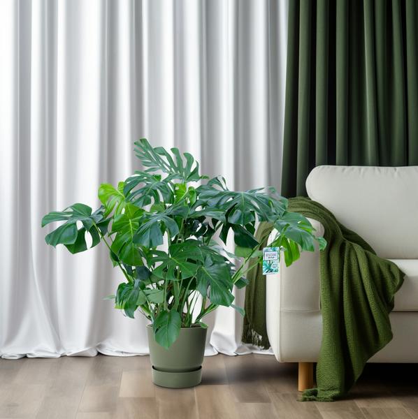 Met zijn grote en kenmerkende bladeren voegt de Monstera een vleugje tropische elegantie toe aan elke ruimte.