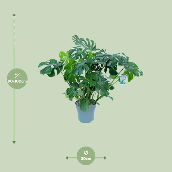 De huidige hoogte van deze Monstera is ongeveer 100 cm, wat zorgt voor een directe toevoeging van groen aan jouw ruimte.