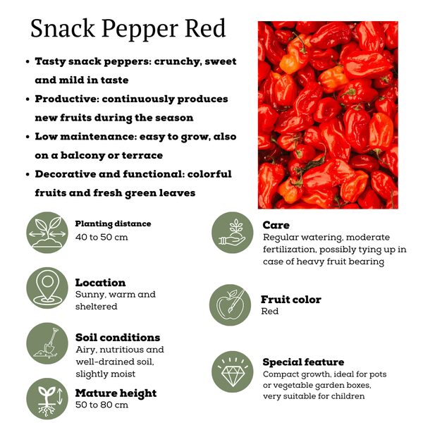 - Vruchten: Cherry tomaatjes (zoet en sappig), rode snack paprika’s (mild en zoet) en rode hete pepers (intens pittig) – perfect voor verschillende gerechten of een gezonde snack.
