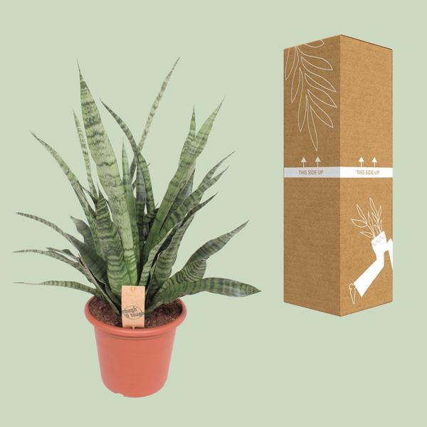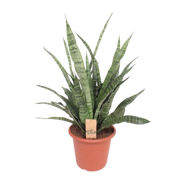 Maak kennis met de Sansevieria Diamond Green, een veelzijdige en onderhoudsvriendelijke kamerplant, ook wel bekend als de ‘Schoonmoeders tong’. Deze betoverende plant komt oorspronkelijk uit West-Afrika en wordt al eeuwenlang gewaardeerd vanwege zijn luchtreinigende eigenschappen en opvallende diamantvormige bladeren. Met zijn unieke kleur en rechtopstaande groei voegt het een vleugje elegantie toe aan elke binnenruimte. Deze Sansevieria Diamond Green gedijt goed in moderate tot heldere lichtomstandigheden en heeft slechts af en toe water nodig. Verbeter uw huis- of kantooromgeving met deze SEO-geoptimaliseerde, door de natuur geïnspireerde juweel. Sansevieria, ook bekend als Vrouwentongen, gedijt op een plek met halfschaduw of een mix van halfschaduw en zon. Het moet eens in de 8-10 dagen water krijgen, waarbij de grond tussen de gietbeurten in mag opdrogen. Deze plant geeft de voorkeur aan goed doorlatende grond, zoals een mengsel voor vetplanten of cactussen. Om een gezonde groei te bevorderen, moet je het eens in de 2-3 maanden bemesten tijdens het groeiseizoen, met behulp van een evenwichtige meststof voor kamerplanten. Zorg ervoor dat je de instructies van de fabrikant volgt voor de juiste dosering en toepassing.Wist je dat Sansevieria Diamond Green, ook bekend als de Snake Plant, niet alleen een mooie kamerplant is, maar ook een natuurlijke luchtzuiveraar? Zijn vermogen om giftige stoffen uit de lucht te verwijderen maakt het de perfecte toevoeging aan je huis of kantoor. Leuke feit: NASA heeft een studie uitgevoerd en ontdekt dat Snake Plants effectief schadelijke chemicaliën zoals formaldehyde en benzeen kunnen filteren, waardoor de lucht schoner en frisser wordt! Dus waarom voeg je niet een vleugje groen toe aan je ruimte terwijl je ook de luchtkwaliteit verbetert? Onthoud wel dat deze prachtige Snake Plant alleen bedoeld is als decoratie en niet om te consumeren.- Sansevieria Diamond Green is een populaire kamerplant, bekend om zijn levendige groene bladeren en wordt meestal gevonden in een potmaat van 25 cm.- Deze plant groeit meestal tot een hoogte van ongeveer 80 cm, waardoor het een opvallende toevoeging is aan elke binnenruimte.- Sansevieria wordt ook vaak aangeduid als Vrouwentong vanwege zijn puntige, tongachtige bladeren.- Deze plant gedijt op een plek met halfschaduw, waardoor het ideaal is voor gebieden die indirect zonlicht ontvangen.- Leuk feitje: Sansevieria heeft luchtzuiverende eigenschappen en staat bekend om het effectief verwijderen van gifstoffen uit de lucht, waardoor het een uitstekende keuze is voor het verbeteren van de luchtkwaliteit binnenshuis.