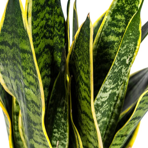 • Uiterlijk: De Sansevieria Trifasciata Futura Superba heeft stevige, rechtopstaande bladeren met een opvallende donkergroene kleur en lichtgele randen. De bladeren hebben een zwaardvormige structuur en een subtiel gestreept patroon.