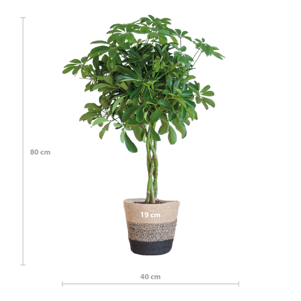 Deze kamerplant is een echte klimmer en kan in zijn natuurlijke habitat andere bomen gebruiken om hogerop te komen. De stevige stam en de mogelijkheid om te klimmen maken de Schefflera een interessante verschijning in elk interieur.
