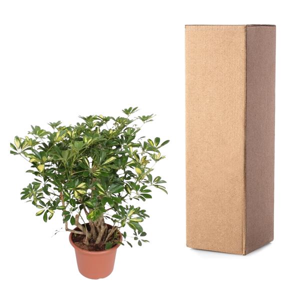 • Wij verpakken jouw producten in een stevige, speciaal voor (kamer)planten ontworpen doos. De planten en de potgrond worden beschermd door een beschermhoes. De kamerplanten worden vastgezet in de doos. Zo wordt jouw plant niet alleen vers en gezond, maar ook ongeschonden geleverd.
