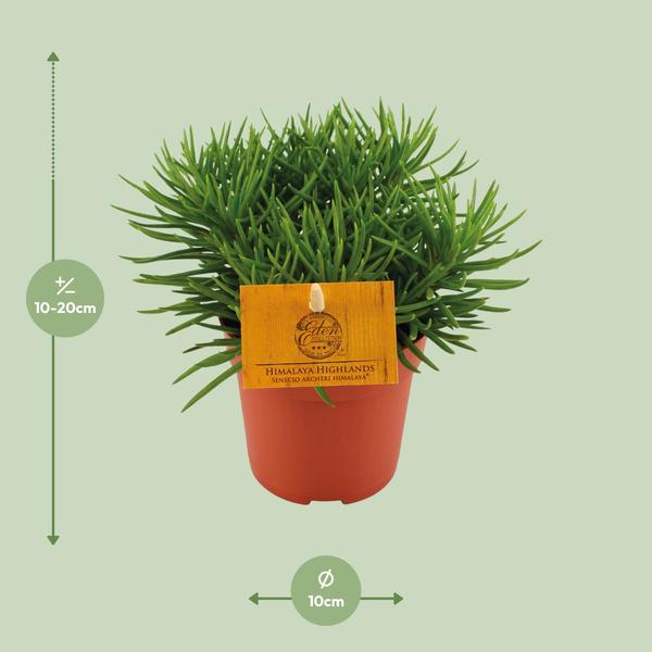 Maak kennis met de Senecio Himalaya, een prachtige kamerplant die ook bekend staat als Cineraria. Afkomstig uit het majestueuze Himalayagebergte, gedijt deze plant uitstekend in binnenomgevingen en voegt een vleugje natuurlijke schoonheid toe aan jouw ruimte. Met zijn levendige groene bladeren en delicate, madeliefachtige bloemen, verlicht de Senecio Himalaya direct elke kamer. Gemakkelijk te verzorgen en met weinig onderhoud, is deze plant perfect voor zowel beginnende als ervaren plantenliefhebbers. Breng een stukje Himalaya in huis met de Senecio Himalaya, een sierlijke en betoverende toevoeging aan elke kamerplantencollectie. Senecio, ook bekend als Cineraria, gedijt op een plek met halfschaduw en regelmatig eens per week water geven. Het geeft de voorkeur aan het planten in goed doorlatende grond die rijk is aan organisch materiaal. Wat betreft meststof, is het het beste om de plant elke 2 tot 4 weken tijdens het groeiseizoen te voeden met een gebalanceerde meststof. Pas echter op dat u niet te veel bemest, dit kan schade veroorzaken. Met de juiste verzorging zal Senecio bloeien en schoonheid en levendigheid toevoegen aan elke ruimte.Wist je dat Senecio Himalaya, ook bekend als de Himalayaanse Senecio, een prachtige plant is die inheems is in het Himalayagebied? Met zijn levendige gele bloemen en weelderige groene bladeren voegt het een vleugje elegantie toe aan elke tuin of binnenruimte. Houd er echter rekening mee dat deze plant strikt bedoeld is voor decoratieve doeleinden en niet eetbaar is. Dus terwijl je misschien verleid wordt door zijn schoonheid, is het het beste om er gewoon van te genieten en er geen hap van te nemen!- Senecio Himalaya is een populaire plant die bekend staat om zijn mooie bloemen en bladeren.- Deze plant heeft een potmaat van 10 cm, waardoor hij geschikt is voor kleine tuinen, balkons of binnenruimtes.- Het groeit meestal tot een hoogte van ongeveer 15 cm, waardoor het een compacte en ruimtebesparende keuze is.- Senecio staat ook bekend als Cineraria en behoort tot de familie Asteraceae.- Deze plant gedijt in halfschaduw, wat verwijst naar gedeeltelijk schaduwrijke omstandigheden.- Leuk feitje: Senecio Himalaya staat bekend om zijn vermogen om vlinders en andere bestuivers aan te trekken, wat een vleugje natuurlijke schoonheid aan uw ruimte toevoegt.