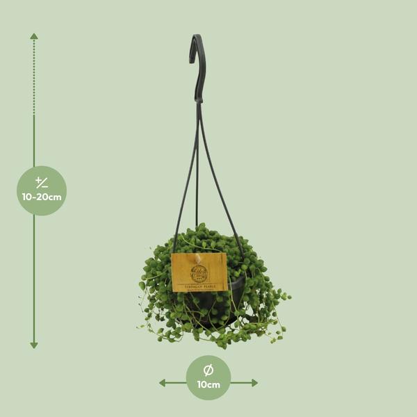 Maak kennis met Senecio Rowleyanus, ook wel bekend als Cineraria, een prachtige kamerplant die een vleugje elegantie toevoegt aan elke ruimte. De oorsprong van deze unieke vetplant kan worden herleid naar Zuid-Afrika. Zijn hangende stelen, die lijken op een snoer van parels, creëren een boeiende visuele aantrekkingskracht. Senecio Rowleyanus vergt weinig onderhoud, waardoor het perfect is voor drukke individuen. Met zijn weelderige groene bladeren en vermogen om te gedijen in indirect zonlicht, is deze SEO-geoptimaliseerde plant een must-have voor degenen die een duurzame en mooie toevoeging aan hun binnentuin zoeken. Breng vandaag nog de schoonheid van Senecio Rowleyanus in uw huis! Om voor Senecio te zorgen, plaats het op een plek met halfschaduw om verbranding te voorkomen. Geef de plant één keer per 8-10 dagen water en laat de grond tussendoor opdrogen. Cineraria geeft de voorkeur aan goed doorlatende grond om wortelrot te voorkomen. Bemest de plant één keer per maand tijdens het groeiseizoen met een gebalanceerde vloeibare meststof. Vermijd overbemesting, omdat dit de plant kan schaden.Leuk feitje: Senecio Rowleyanus, algemeen bekend als ‘Snoer van Parels’, is een unieke vetplant die lijkt op een prachtige reeks groene parels die naar beneden cascadeert. Deze eigenaardige plant is een natuurlijke luchtzuiveraar en verwijdert giftige stoffen uit de atmosfeer, waardoor de kwaliteit van de binnenlucht verbetert. Het is echter belangrijk op te merken dat hoewel het ‘Snoer van Parels’ een charmante toevoeging is aan je interieur, het niet eetbaar is. Houd dus in gedachten dat deze schattige parels alleen bedoeld zijn voor esthetische doeleinden en niet als snack gebruikt moeten worden, hoe verleidelijk ze er ook uitzien!- Senecio Rowleyanus, ook bekend als Cineraria, is een populaire vetplant.- Deze unieke plant heeft een potmaat van 10 cm, waardoor hij perfect is voor kleine ruimtes of binnentuinen.- Senecio Rowleyanus groeit meestal tot een hoogte van ongeveer 15 cm, waardoor het een compacte en beheersbare plant is.- Het geeft de voorkeur aan een plek in de halfschaduw, wat zich vertaalt naar gedeeltelijke schaduw, waardoor het ideaal is voor gebieden met indirect zonlicht.- Leuk weetje: Senecio Rowleyanus wordt vaak “String of Pearls” genoemd vanwege zijn unieke bladeren die op een snoer van kleine groene parels lijken.