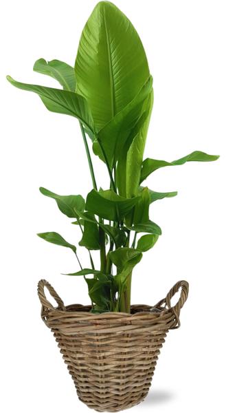 - De Strelitzia Nicolai, ook wel bekend als de Witte Paradijsvogelplant, heeft grote, groene bladeren met een bananenplantachtige vorm. De bladeren zijn glanzend en stevig, met een lange bladsteel en een waaiervormige opstelling. De plant kan binnenshuis groot worden en heeft een imposante, tropische uitstraling. Bloei binnenshuis is zeldzaam, maar wanneer hij bloeit, produceert hij opvallende witte bloemen.