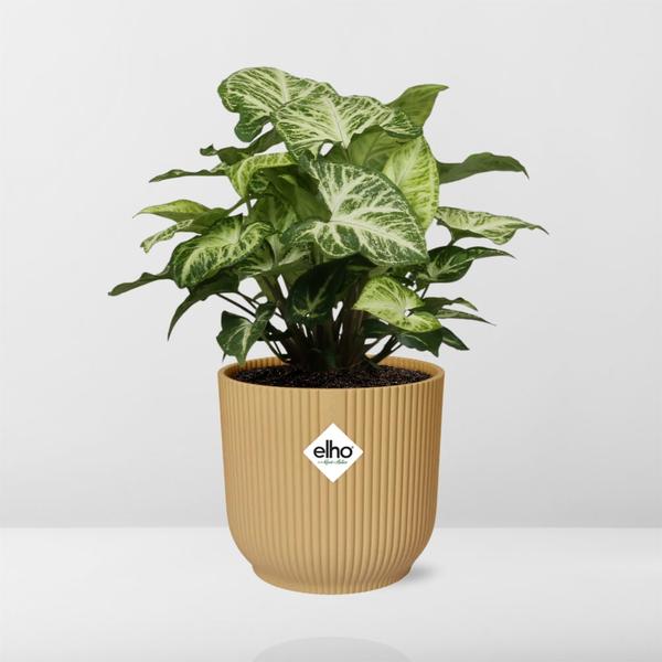 Syngonium, ook wel bekend als pijlpuntplant of pijlplant, gedijt goed op een plek met gedeeltelijke schaduw en moet eens per week bewaterd worden. Het geeft de voorkeur aan goed doorlatende grond die rijk is aan organisch materiaal. Wat betreft meststof, wordt aanbevolen om deze plant eens per maand tijdens het voorjaar en de zomer te voeden, met behulp van een gebalanceerde kamerplantmeststof. Echter, tijdens de herfst en winter kan het bemesten worden verminderd tot elke 2-3 maanden. Vergeet niet om eventuele dode bladeren te verwijderen en regelmatig de bladeren te besproeien om een vochtige omgeving te creëren. Geniet van deze prachtige Syngonium in zijn geleverde sierpot!