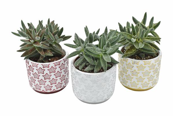 Tarantula Glitter in Xmas White + Stars – 3 stuks – Ø8,5cm – ↕13cm