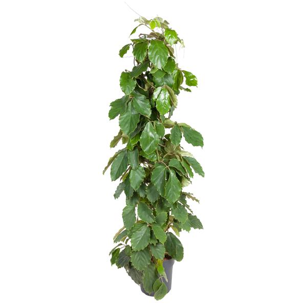 • Uiterlijk van de plant: De Tetrastigma Voinierianum heeft grote, gelobde bladeren die groen zijn met een lichte glans. De plant groeit in een klimmende of sluipende vorm, wat hem een tropische uitstraling geeft. Bij de juiste verzorging kunnen er kleine, onopvallende bloemen verschijnen.