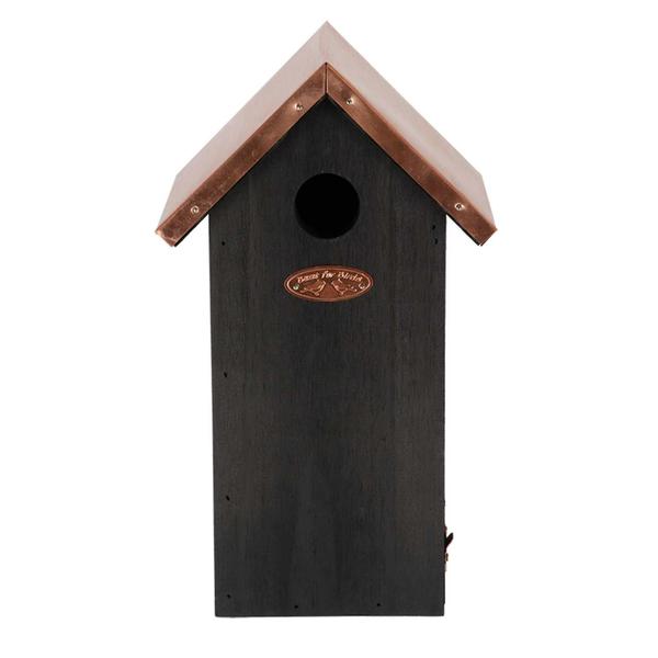 Deze elegante nestkast in zwart met koperaccenten biedt de Koolmees een veilige en stijlvolle plek om te nestelen. Het robuuste vurenhout en de koperen details zorgen voor een moderne uitstraling die in elke tuin past. Naast de Koolmees biedt de kast ook andere vogelsoorten een fijne plek om te schuilen en te broeden. Perfect voor tuinen die een moderne en praktische toevoeging nodig hebben.