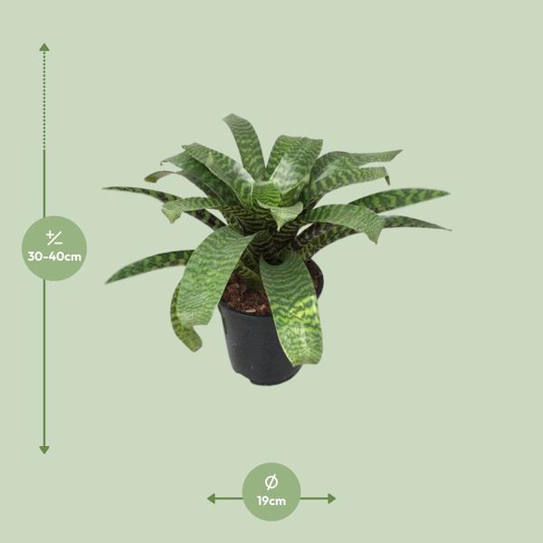 – Vriesea bezorgformaat: Deze Vriesea wordt geleverd in een potmaat van 19 cm.- Huidige hoogte: De Vriesea plant heeft momenteel een geschatte hoogte van 35 cm.- Ideale verlichting: Vriesea gedijt goed op een plek met halfschaduw, waardoor het een veelzijdige toevoeging is aan elke binnenruimte.- Makkelijk te onderhouden plant: Deze Vriesea plant is onderhoudsarm en daardoor perfect voor zowel ervaren als beginnende tuiniers.- Opvallend uiterlijk: Met zijn levendige kleuren en unieke vorm zal de Vriesea plant zeker een vleugje elegantie toevoegen aan elke ruimte.