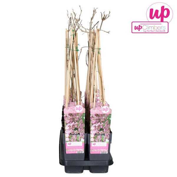 ‘Wisteria floribunda Rosea’ ook wel bekend als roze regen is een roze bloemige variant van de blauwe regen. Deze soort groeit en bloeit op dezelfde manier als de blauwe regen, maar is net even wat exclusiever! Het is een klimplant met mooie, zeer lange, hangende bloemtrossen die massaal verschijnen in mei- juni. Er kan in september ook nog een nabloei plaatsvinden. Het is een snelgroeiende klimplant die een maximale hoogte van 10 meter kan bereiken. Om de wisteria het mooist in vorm te houden kun je hem het beste langs een pergola, schutting of rek leiden. Zorg daarbij voor stevige steun, waaraan de takken bevestigd worden en hij naar de zon kan klimmen. Daarnaast is het belangrijk de plant regelmatig terug te snoeien tijdens de groei of in het vroege voorjaar. Snoei liefst twee maal per jaar.