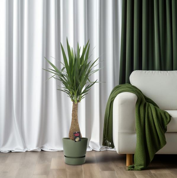 Ontdek de betoverende Yucca elephantipes, een prachtige kamerplant die ook bekend staat als Yucca. Oorspronkelijk afkomstig uit Midden-Amerika, voegt deze fascinerende plant een vleugje tropische elegantie toe aan elke leefruimte. Met zijn lange, slanke stam en weelderige, groene bladeren is Yucca elephantipes een opvallend wonder. Geniet van de voordelen van verbeterde luchtkwaliteit en een rustige sfeer, terwijl je moeiteloos je interieur verfraait. Verhoog je binnenoase met deze Yucca elephantipes, de perfecte keuze voor plantenliefhebbers die schoonheid en rust in één pakket zoeken.