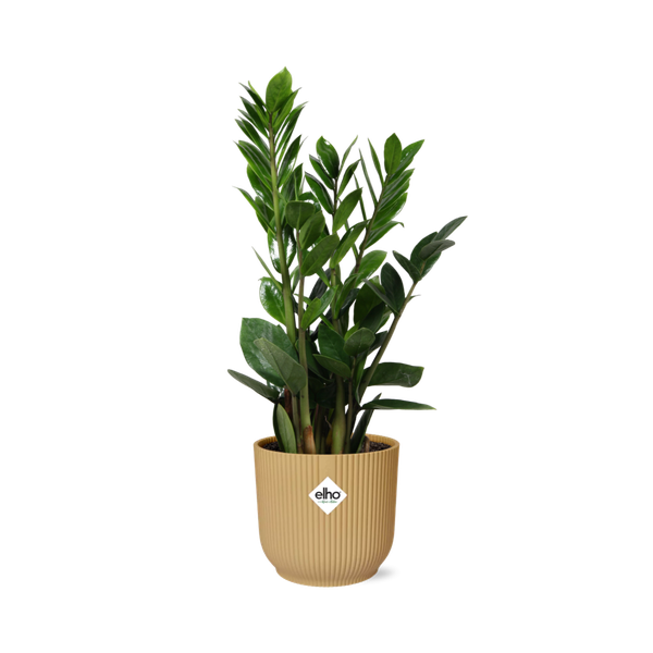 Zamioculcas, alom bekend als de ZZ-plant, is een onderhoudsvriendelijke plant die gedijt in halfschaduwrijke of schaduwrijke gebieden. Het moet eenmaal elke 8-10 dagen bewaterd worden, waarbij de grond tussen de bewatering door moet opdrogen. Het ideale grondtype voor Zamioculcas is een goed doorlatend potgrondmengsel.
